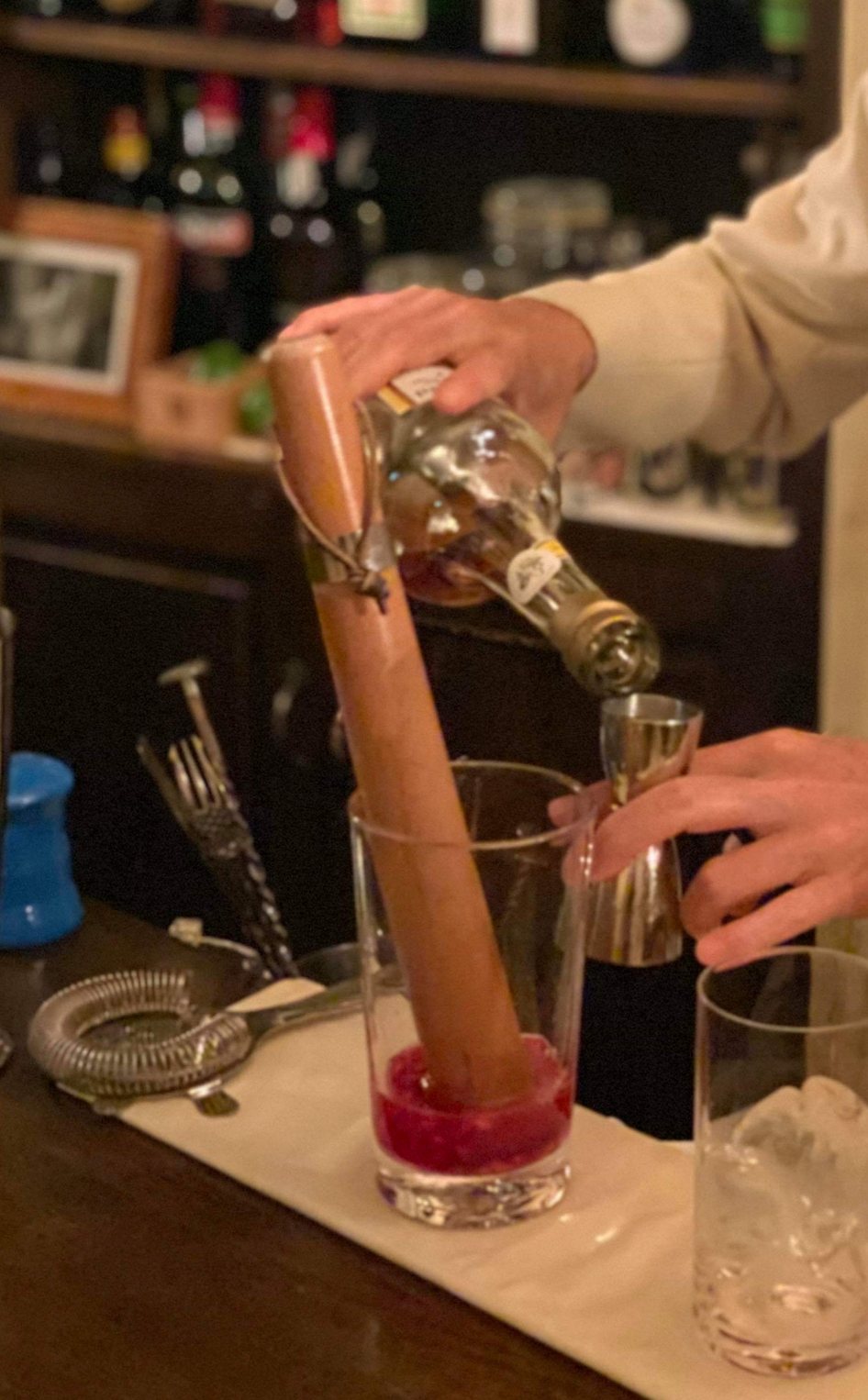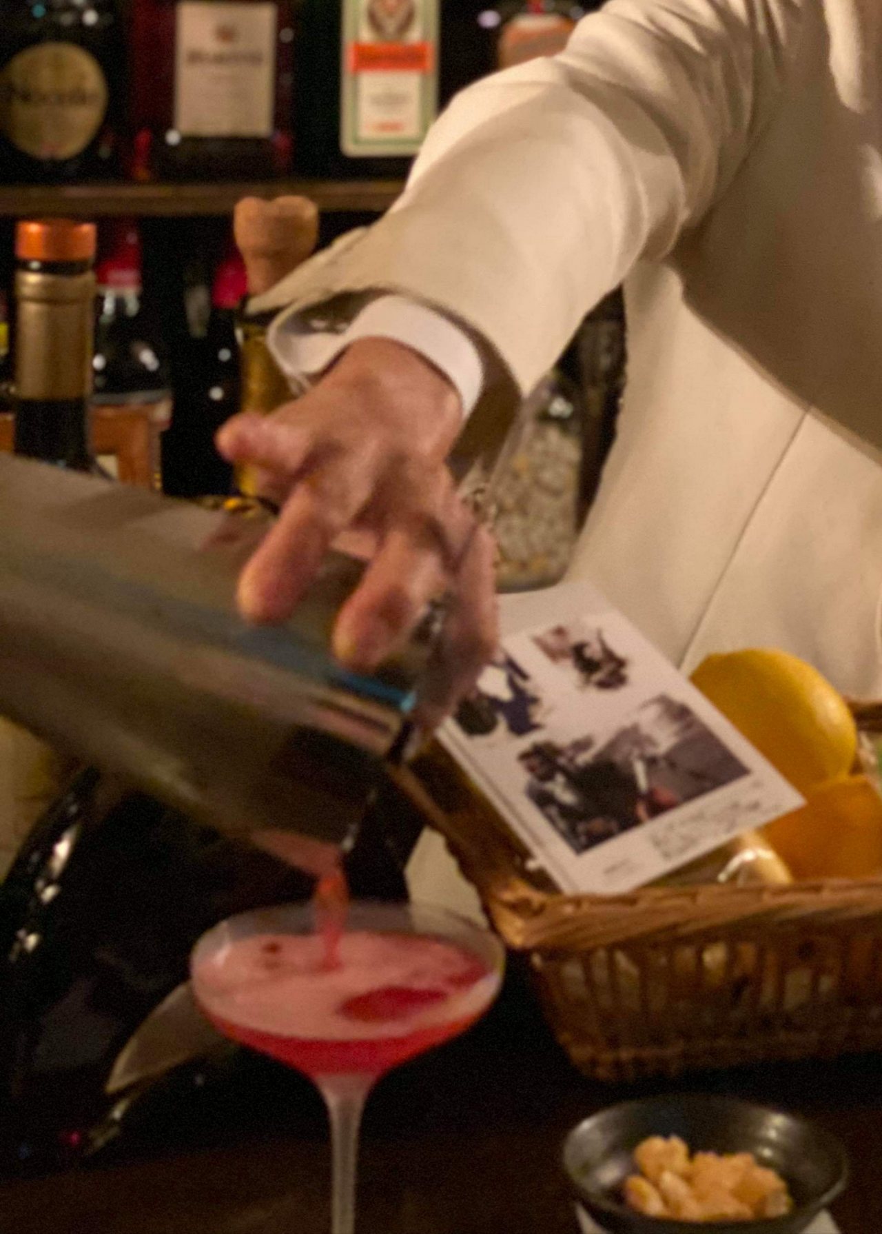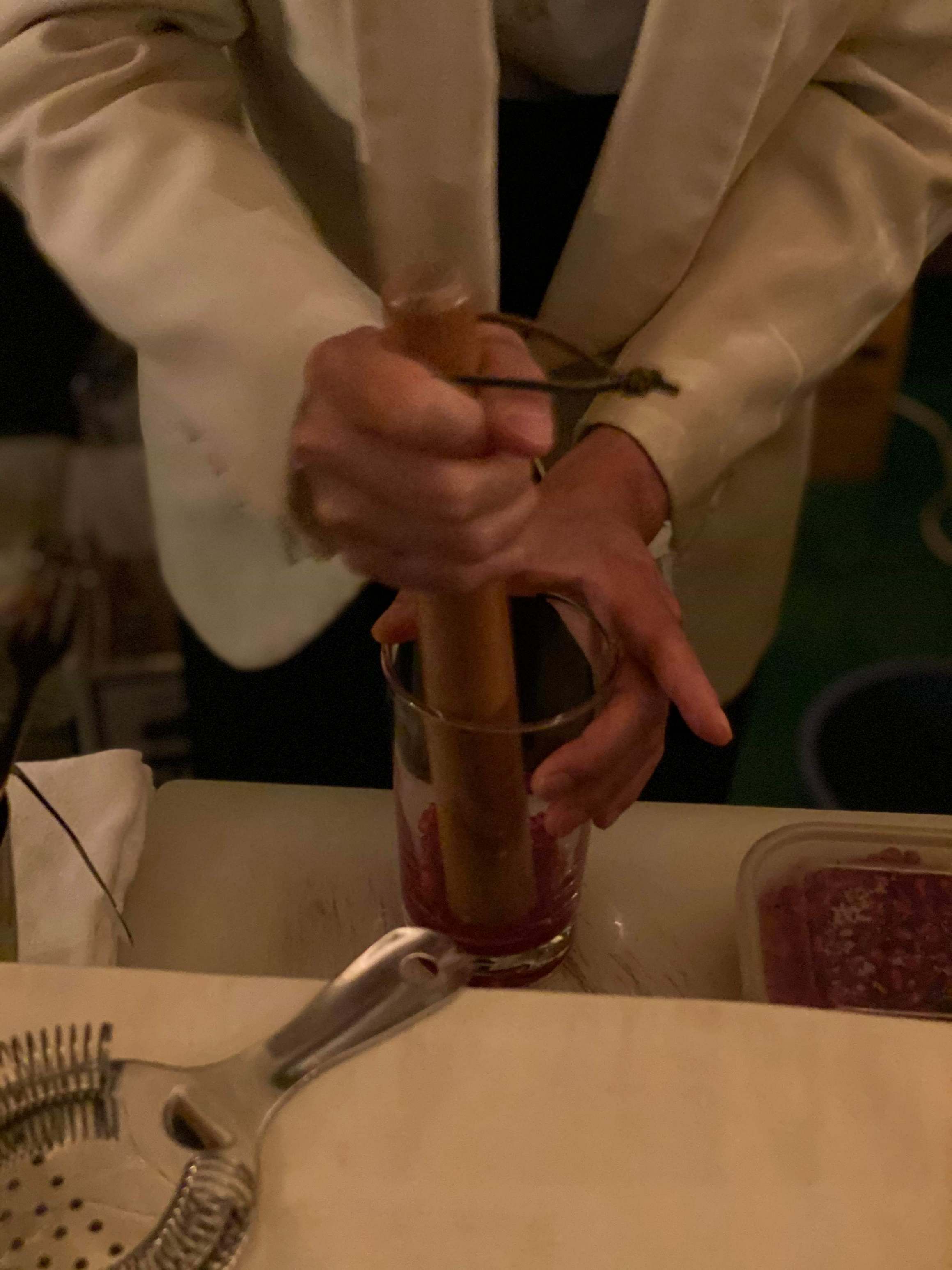 ザクロのカクテル始めます2 公開済み 2019年9月27日 では、生ザクロでジャックローズ作りましょう。 ザクロの実に粉砂糖振り掛けて、優しく潰します。 ここに、カルバドスと絞ったレモンジュース加えて、シェークして出来上がりです。 ザクロ捌くのがちと面倒ですが、ご家庭でもお試しください。